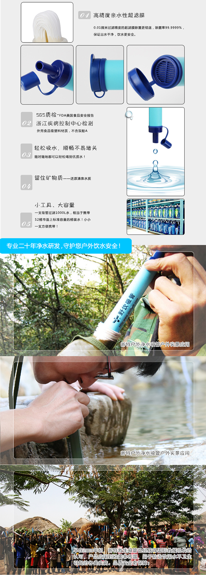 | 【产品名称】 | B-QM型户外便携式净水吸管 野外个人生存吸管式净水器 |