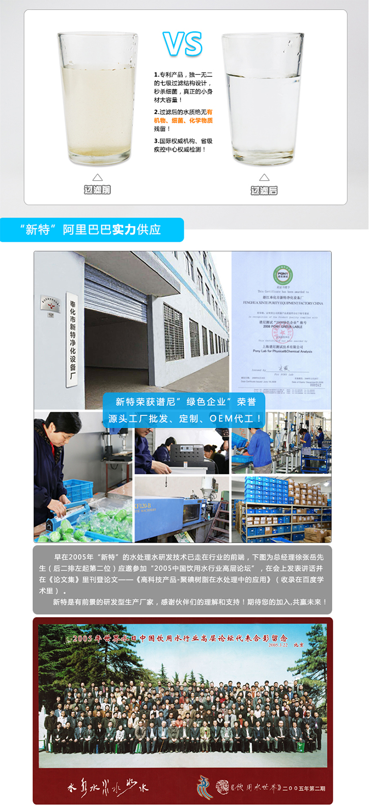 0.1微米高精度亲水性微孔膜高效去除细菌,去除微细颗粒物高效降低浊度,永久性亲水,大通量吸水更轻松,第一口不产生“黑水”,过滤后水质明亮清澈。